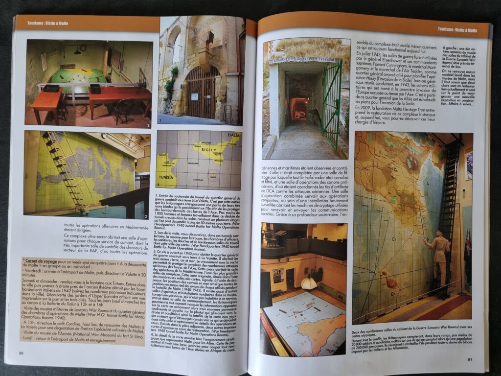 Dans un sommaire varié, le lecteur retrouve également Sébastien HERVOUET, qui présente les vestiges entretenus et visitables de la présence britannique à Malte durant la Seconde Guerre mondiale. On y découvre notamment les salles du cabinet de la guerre avec leurs grandes cartes de situation sur des murs particulièrement hauts de plafond.