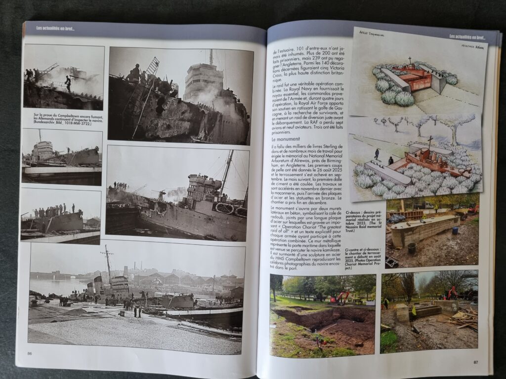 La rubrique des actualités se concentre sur la conception et la construction du monument commémoratif érigé au National Memorial Arboretum d’Alrewas, près de Birmingham, en Angleterre. Une occasion de passer brièvement en revue le succès de l’opération Chariot sur Saint-Nazaire en 1942.