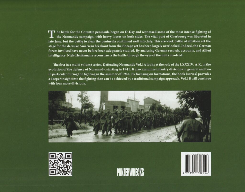 Ce premier volume, de ce qui s’annonce être une série à venir, se concentre sur les unités allemandes en position dans le Cotentin au moment du Débarquement allié en Normandie et qui y combattent durant la bataille de Normandie en commençant par le LXXXIV. Armee-Korps et ses unités organiques, la 77. Infanterie-Division et la 91. Infanterie-Division. Le tout avec un niveau de détails particulièrement élevé et qui veut renouveler le genre dont la référence est détenue jusqu’à présent par Niklas ZETTERLING avec son ouvrage Normandy 1944: German Military Organization, Combat Power and Organizational Effectiveness…