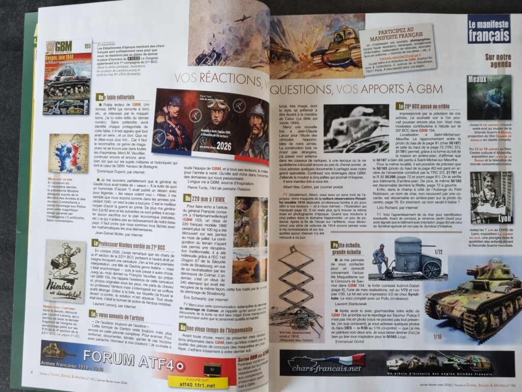 Comme de coutume, les premières pages de GBM donnent la parole aux lecteurs, prolongent certains échanges avec la rédaction et proposent un tour d’horizon de l’actualité des reconstitutions. Ce numéro ne déroge pas à la règle, tout en apportant deux compléments particulièrement bienvenus à des dossiers antérieurs.