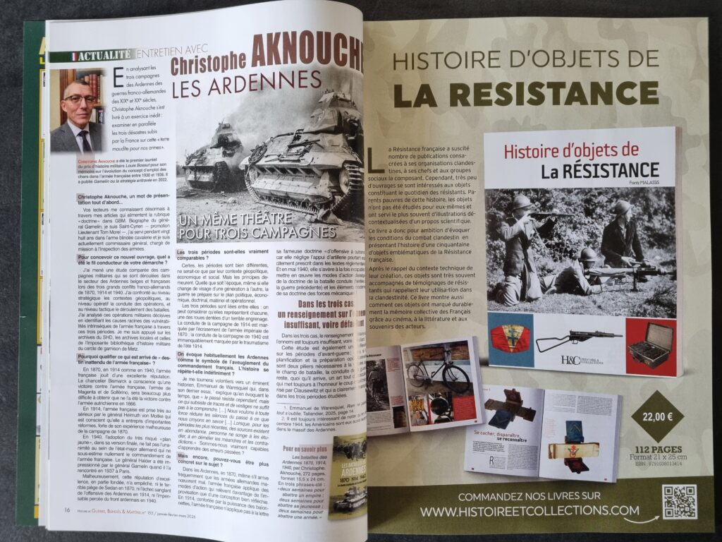 À l’occasion de la parution de son ouvrage consacré aux trois batailles des Ardennes (1870, 1914 et 1940), Christophe AKNOUCHE, contributeur régulier de GBM et déjà auteur d’une biographie de Maurice GAMELIN, répond aux questions de la rédaction. L’entretien, dense et stimulant, donne immédiatement envie de se plonger dans ce travail de synthèse, qui éclaire la récurrence tragique de ce théâtre d’opérations dans l’histoire militaire française.