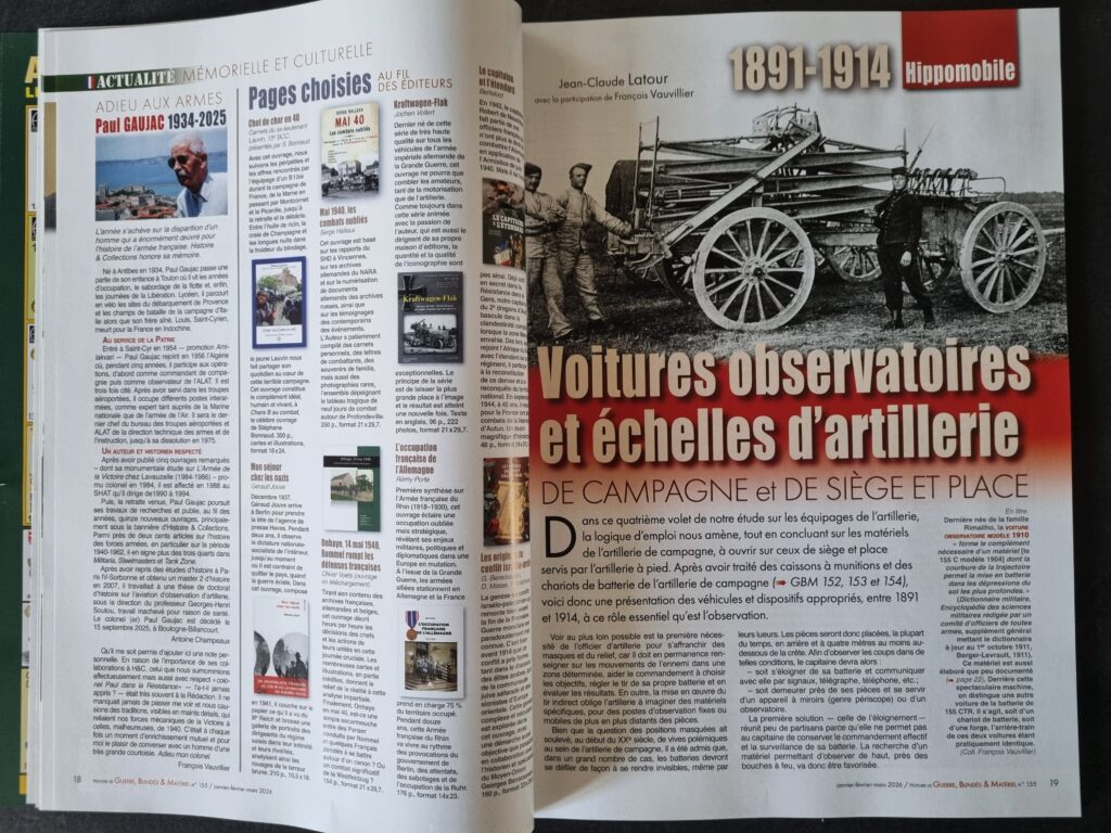 • Jean-Claude LATOUR, 1891-1914, voitures observatoires et échelles d’artillerie de campagne et de siège et place (4 pages)