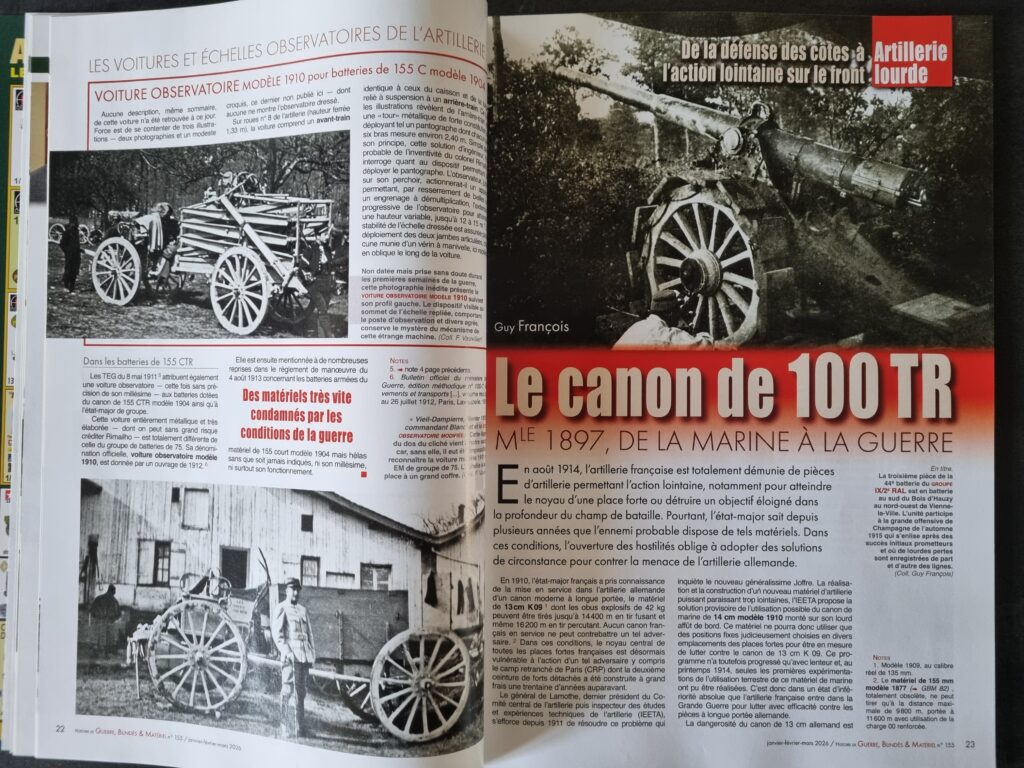 • Guy FRANCOIS, De la défense des côtes à l’action lointaine sur le front, le canon de 100 TR Modèle 1897, de la Marine à la guerre (10 pages)