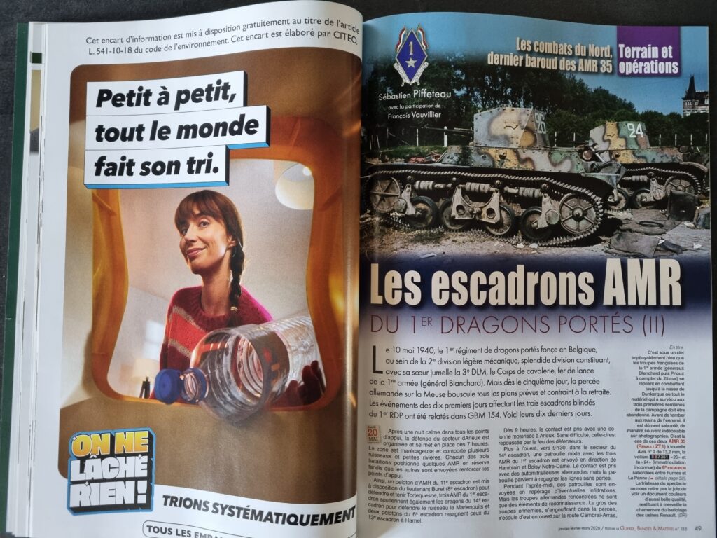 • Sébastien PIFFETEAU, Les escadrons AMR du 1er Dragons Portés (2e partie), les combats du Nord, dernier baroud des AMR 35 (12 pages)