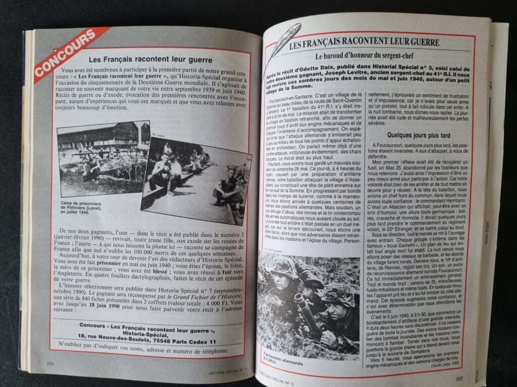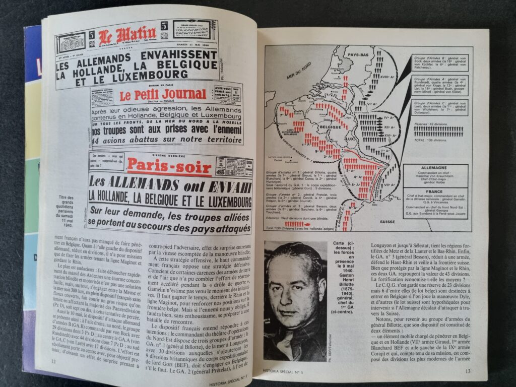 Malgré la brièveté de chaque article, le sommaire couvre un spectre large : ligne Maginot, état de l’armée allemande, bataille des Alpes, Dunkerque, armistices franco-allemand et franco-italien. Sans oublier le témoignage d’un vétéran de la 19ᵉ division d’infanterie face à la 44. Infanterie-Division lors des combats sur la Somme pour percer la Ligne Weygand.