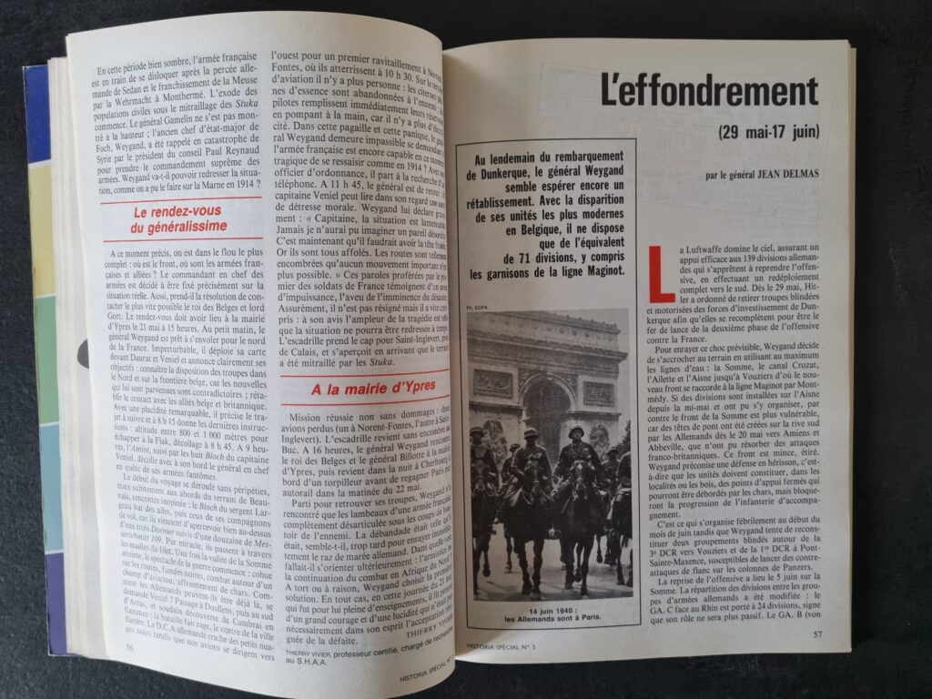 Les années 1990 marquent une inflexion notable dans l’historiographie de la défaite française de 1940. Sous l’impulsion de plusieurs chercheurs, l’analyse des causes s’éloigne progressivement des clichés trop faciles. En témoigne cet Historia spécial nᵒ 5, publié à l’occasion du cinquantième anniversaire des événements, qui réunit plusieurs auteurs alors particulièrement connus et actifs.