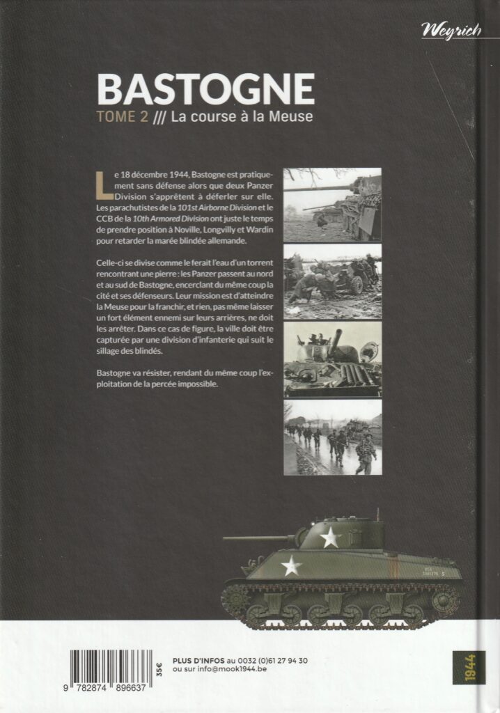 Avec La course à la Meuse – Bataille des Ardennes – Bastogne (2), Hugues WENKIN prolonge son analyse de l’offensive allemande de décembre 1944. Après les combats sur l’Our abordés dans le premier volume, l’auteur se concentre sur l’avance de la 5. Panzer-Armee du 18 au 24 décembre 1944, en particulier sur les actions de la 2. Panzer-Division et de la 130. Panzer-Lehr-Division jusqu’aux abords de Dinant. L’ouvrage revisite une séquence souvent résumée à Bastogne et invite à reconsidérer le déroulement réel de cette course vers la Meuse.
