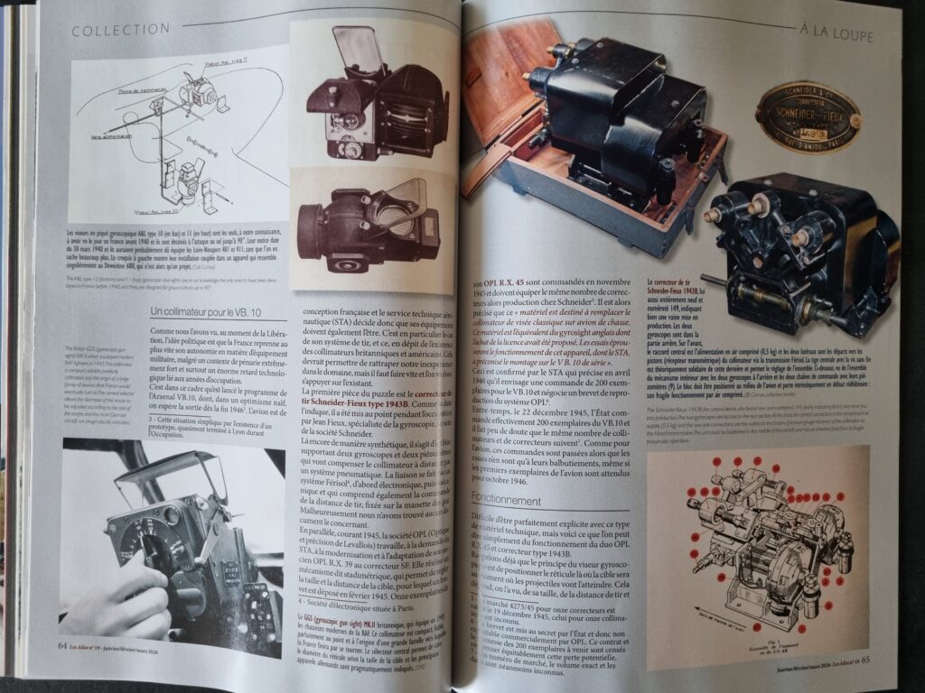 Enfin, l’article dédié au collimateur gyroscopique destiné à l’Arsenal VB.10, développé à la fin du conflit, rappelle un sujet toujours d’actualité : recouvrer et assure la souveraineté française en termes d’armement. Là aussi, les vues en couleurs de ce dispositif magnifient ce simple objet dont on admire la complexité et la précision.