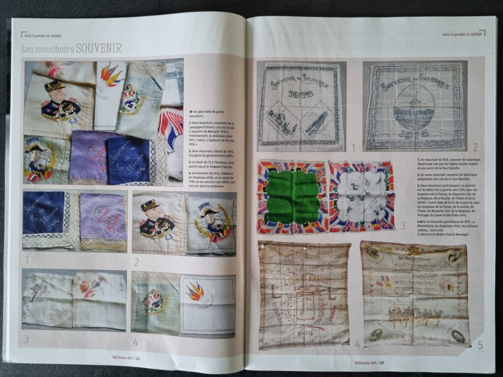 Particulièrement original, l’un des articles consacrés à la Première Guerre mondiale se penche sur les mouchoirs en tissu des poilus. À l’heure où le papier jetable a remplacé cette pièce d’étoffe autrefois omniprésente, le sujet peut sembler anecdotique, voire baroque.